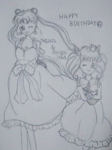 月心二周年のお祝いとWうさのお誕生日イラストです♪